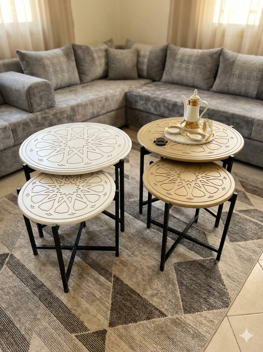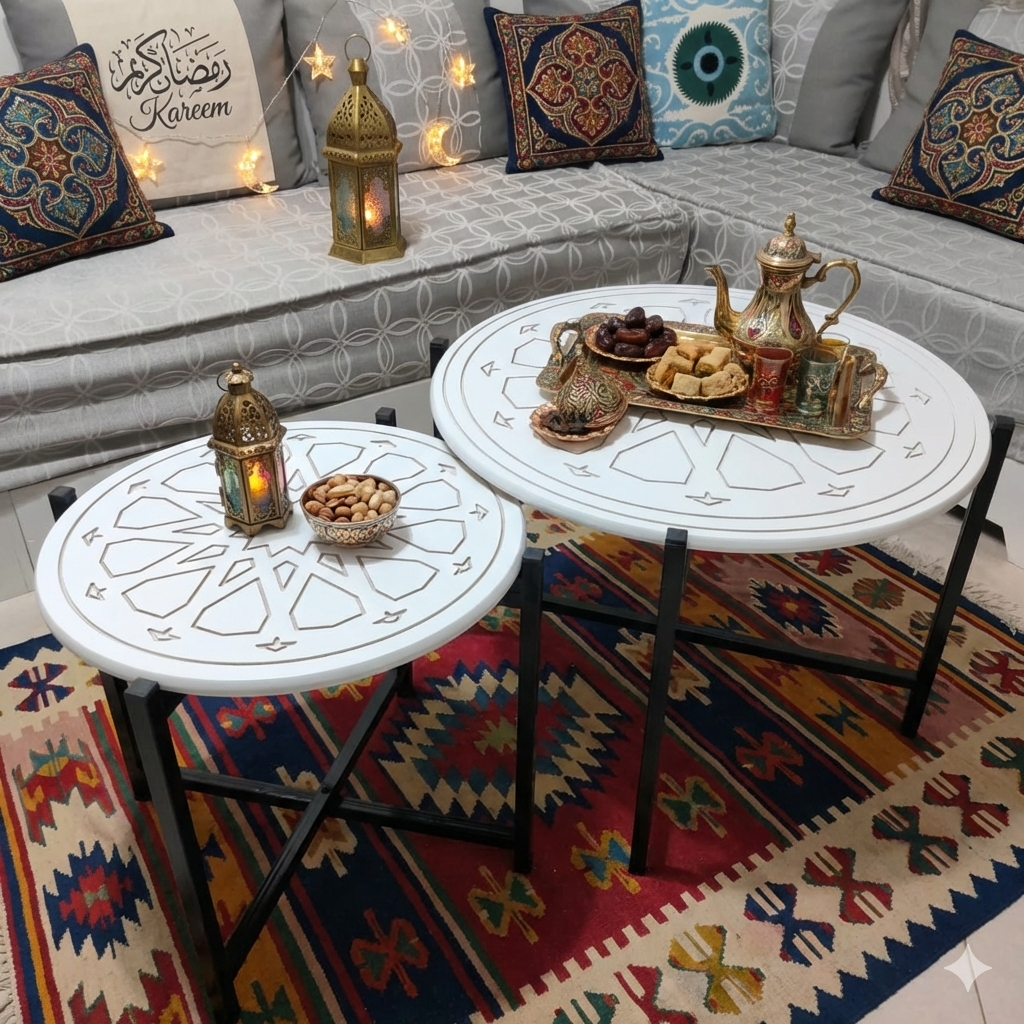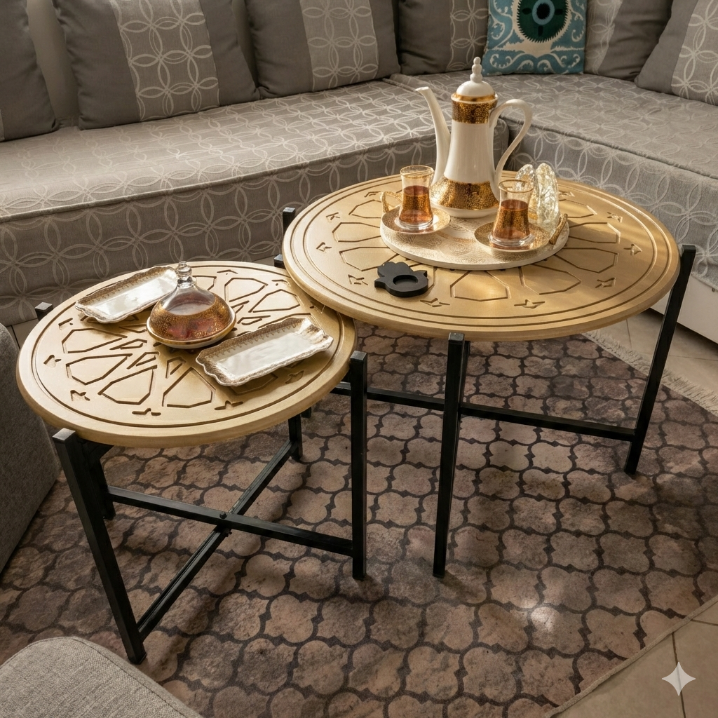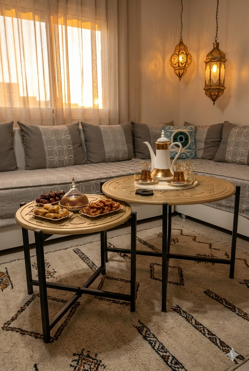 Revivez les instants précieux du Ramadan avec la Table Basse El-Bahdja — bien plus qu’un meuble, c’est un hommage à l’Algérie d’autrefois, à ses soirées familiales, à ses odeurs de thé à la menthe, à ses conversations sous les lampes à huile, à ses rires étouffés dans les coussins du salon.