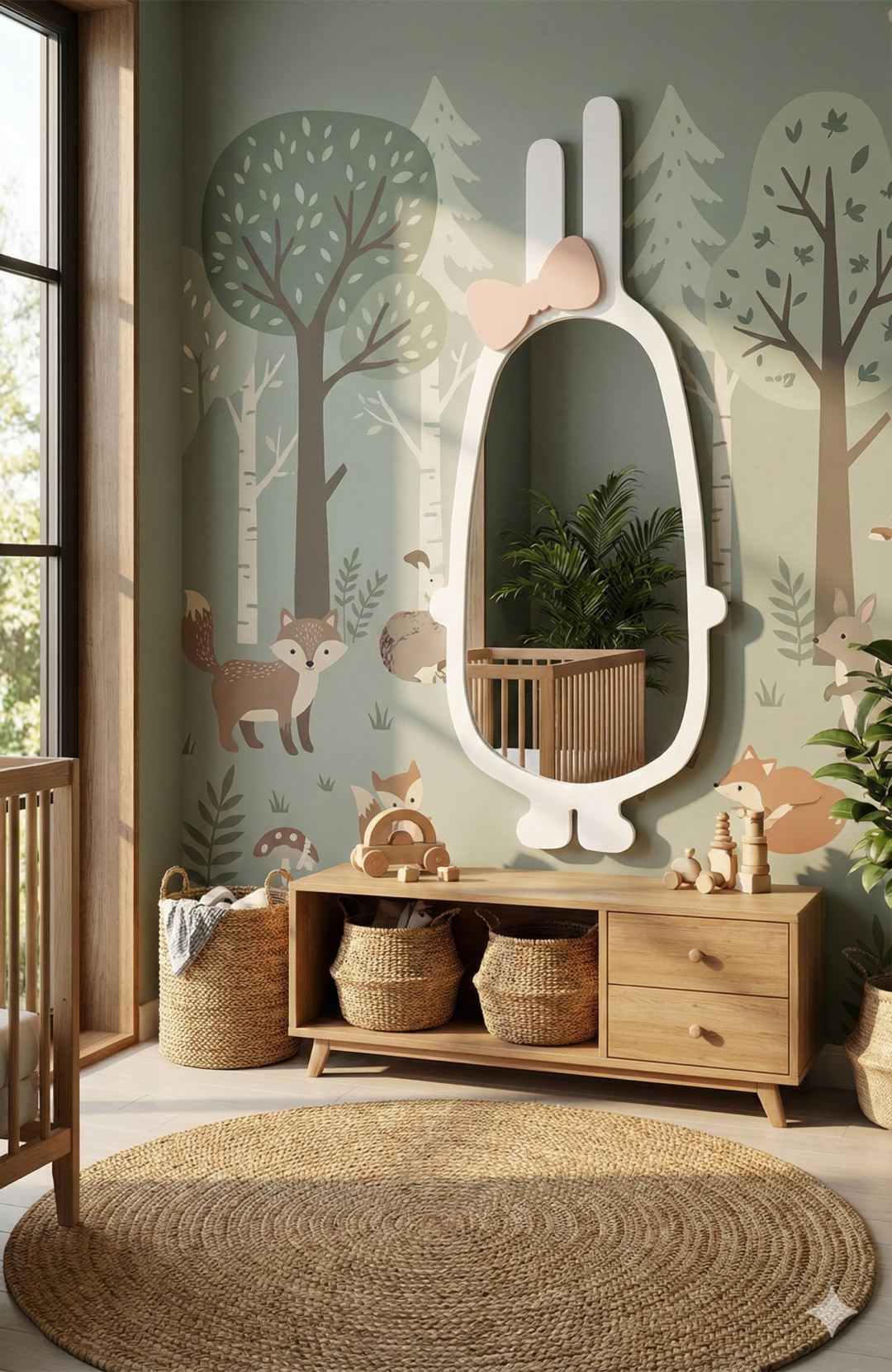 🐻 Miroir Chambre d’Enfant 90×45 cm – Design Ours & Lapin Adorable