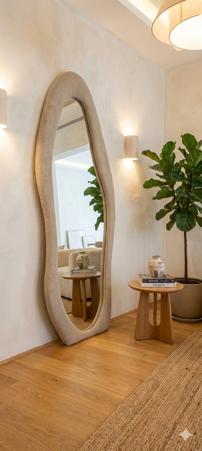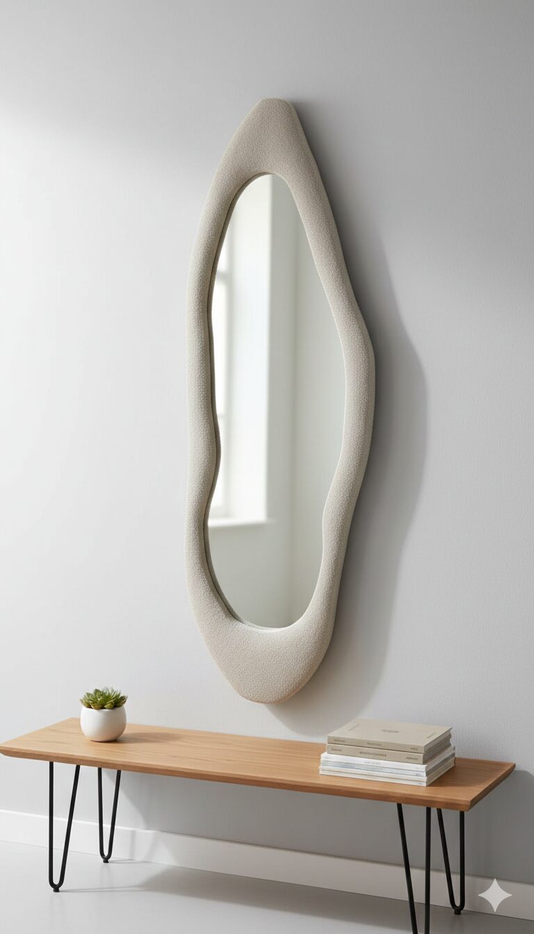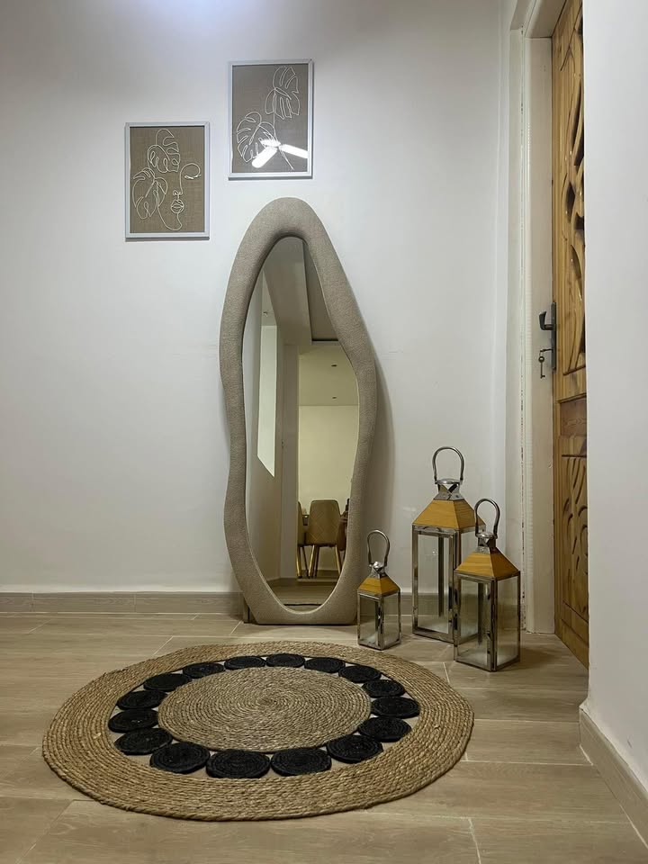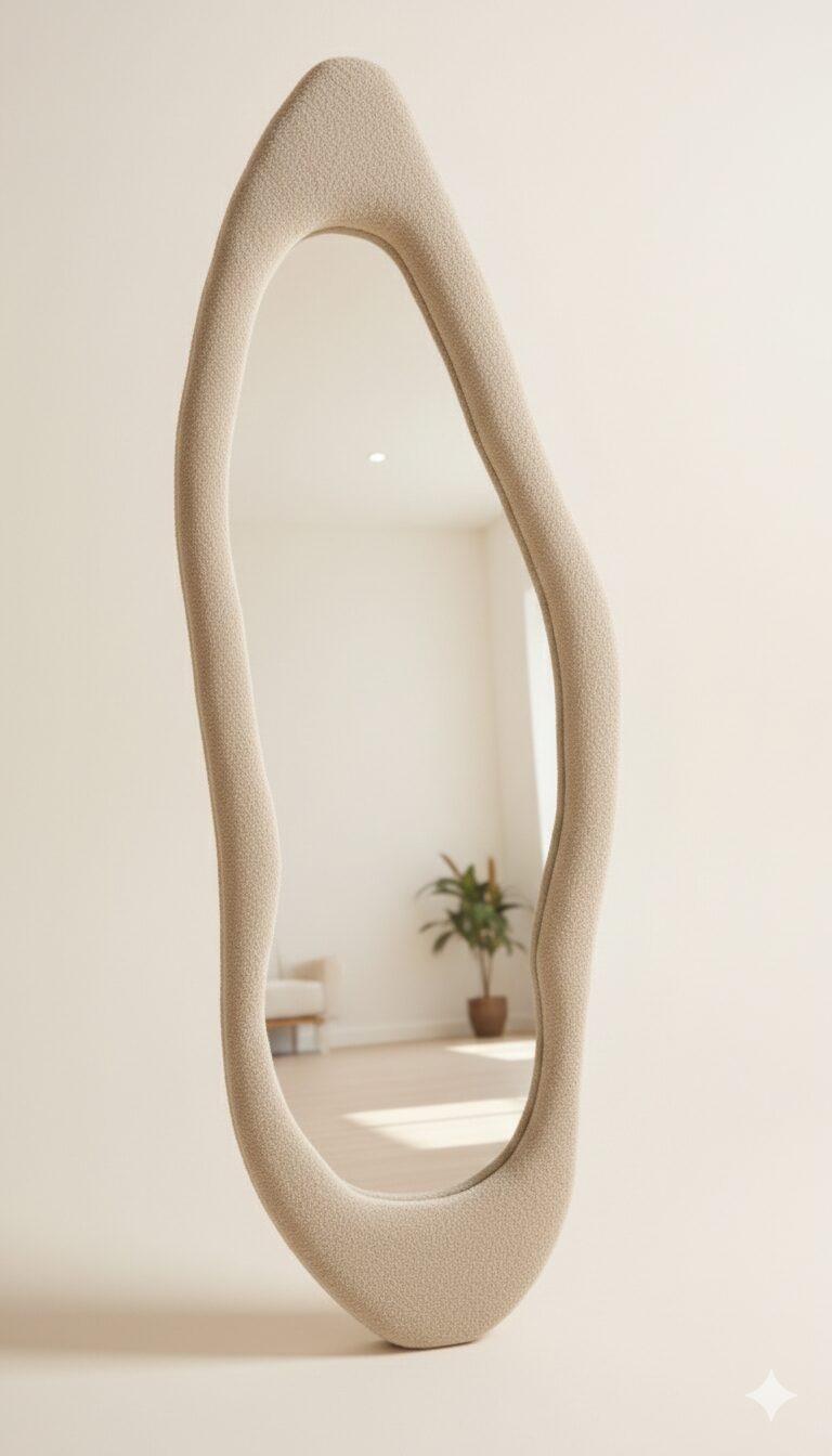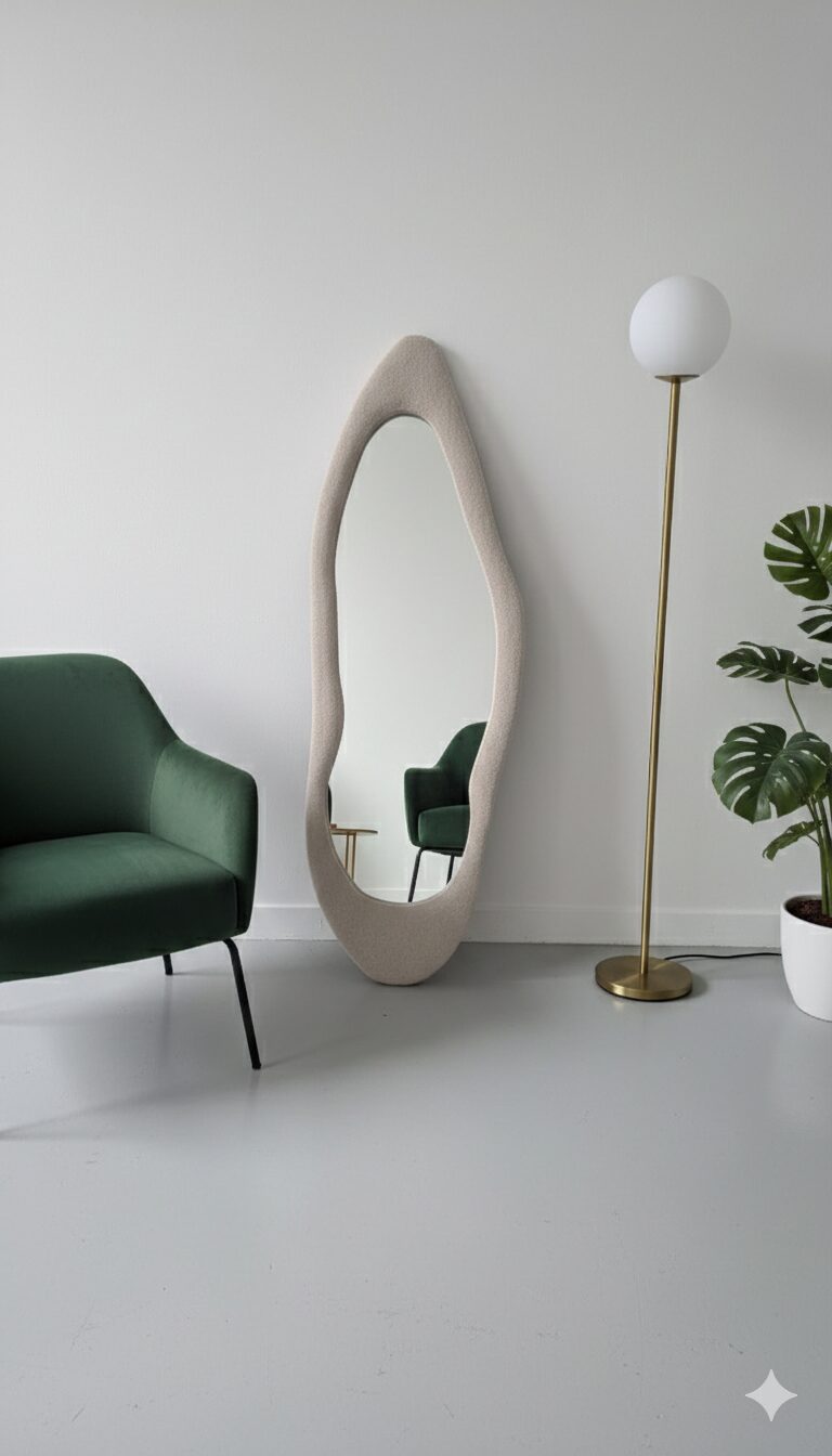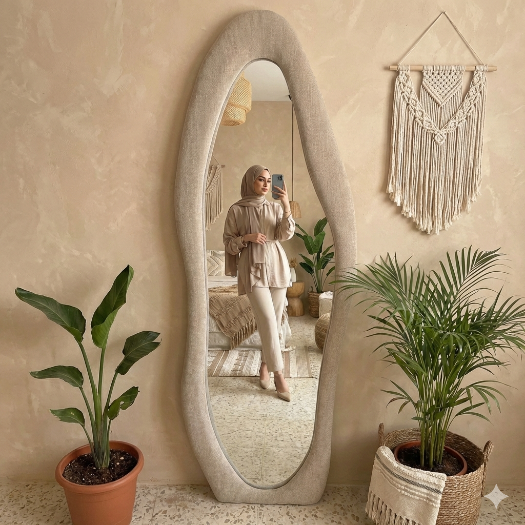 Découvrez le nouveau miroir sur pieds 160×60 cm, cadre en tissu bouclé haute qualité. Design tendance, élégant et confortable. Idéal pour salon, chambre ou dressing. Livraison en Algérie.