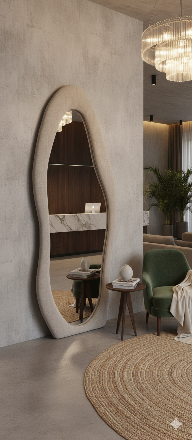 Apportez une touche de douceur et d’élégance à votre intérieur avec ce nouveau modèle de miroir sur pieds, dimensions 160 cm x 60 cm, doté d’un cadre en tissu de haute qualité. Conçu pour les amateurs de design contemporain et chaleureux, il s’intègre parfaitement dans n’importe quel espace : salon, chambre, dressing, entrée ou salle de bain.